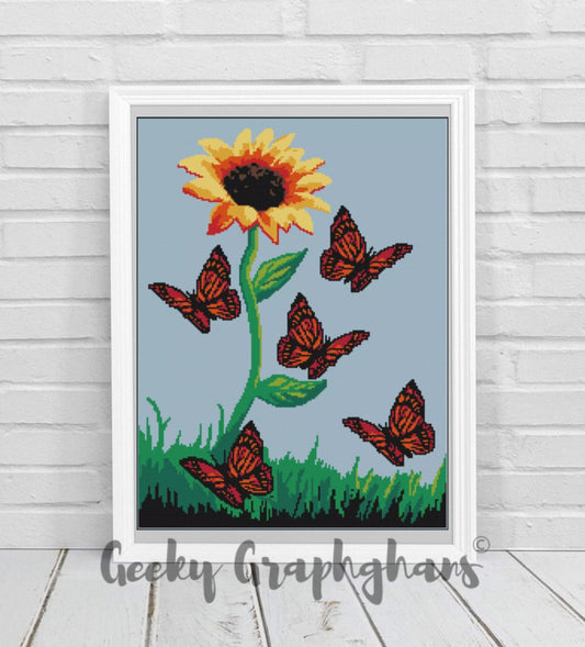 Sunflowers Butterflies Crochet Graphghan Pattern