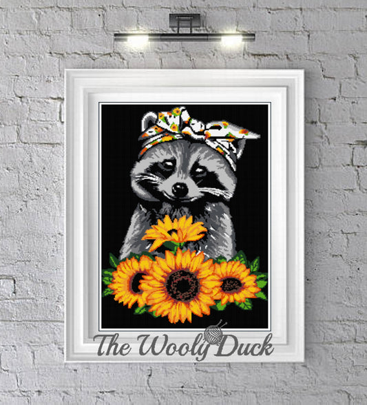 Raccoon Sunflowers Crochet Graphghan Pattern