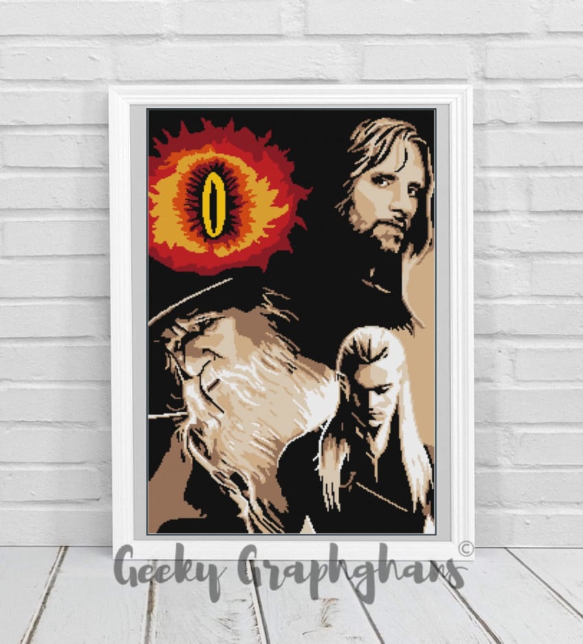 Embark on an epic Middle-earth adventure with this stunning graphghan pattern inspired by J. R. R. Tolkien's legendary saga. Featuring iconic characters Gandalf, Aragorn, and Legolas alongside the menacing Eye of Sauron, this design brings the magic of fantasy literature to life in glorious crochet. Perfect for devoted fans and seasoned makers alike, the pattern combines intricate graphing with recognizable imagery that'll have fellow enthusiasts spotting the references instantly. Whether you're crafting a cosy throw for your reading nook or gifting it to a fellow fan, this pattern delivers both visual impact and the satisfaction of completing a truly memorable project. Download your pattern today and start stitching your way through Middle-earth.